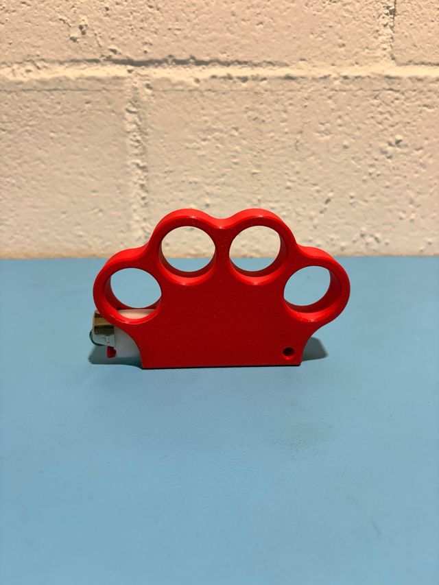 Custodie per accendini con design originali. - Custodie a forma di grana in vari colori: rosso, blu, verde e viola. - Custodia a forma di pugno americano in colore rosso.