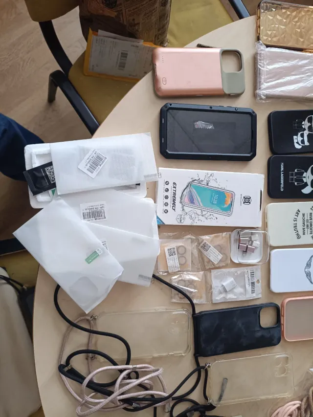 Dettagli del prodottoVarietà di custodie per iPhone 13 Pro Max. - Custodia trasparente con cordino. - Custodia nera con cordino. - Custodia rosa con batteria. - Custodia nera resistente. - Custodia resistente all'acqua. - Custodie Karl Lagerfeld. - Custodie con design in marmo. - Custodie dorate e rosa. - Protezioni per lo schermo. - Accessori per carica e suono. Chiedi il prezzo per tutto o separatamente. La descrizione è stata tradotta automaticamente.