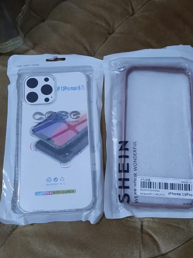 Dettagli del prodottoDue cover per iPhone 13 Pro Max (6.7) del marchio SHEIN. Una è trasparente e l'altra è di colore rosa. - Cover trasparente con design. - Cover con bordo rosa. - Fabbricato in Cina. La descrizione è stata tradotta automaticamente.