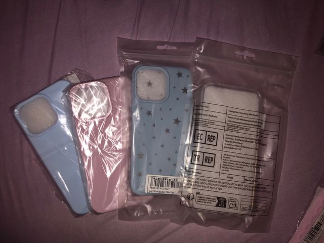 Dettagli del prodottoSi vendono nuove fondi per iPhone 13 Pro. Il prezzo è di 1€ per unità. - Fondi blu con stelle. - Fondi rosa. - Fondi blu liscia. - Fondi trasparente. La descrizione è stata tradotta automaticamente.