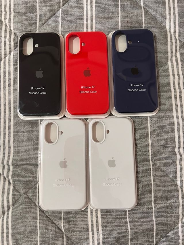 Dettagli del prodottoCustodie in silicone per iPhone 17. - Custodia nera - Custodia rossa - Custodia blu navy - Custodia bianca (x2) 8€ ciascuna La descrizione è stata tradotta automaticamente.