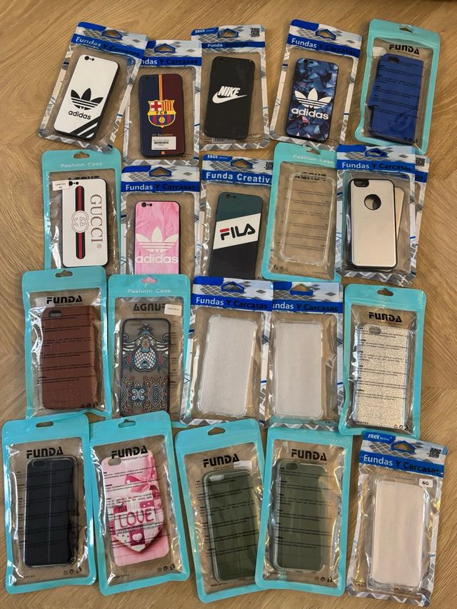 Dettagli del prodottoSet di cover per iPhone 6/6s con design vari. Singole o in lotto. - Cover con logo Adidas. - Cover con logo Nike. - Cover con logo Gucci. - Cover con logo Fila. - Cover trasparenti e altri design. La descrizione è stata tradotta automaticamente.