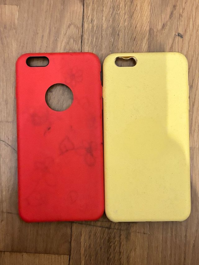 Dettagli del prodottoDue cover protettive per telefoni cellulari, una rossa e una gialla.