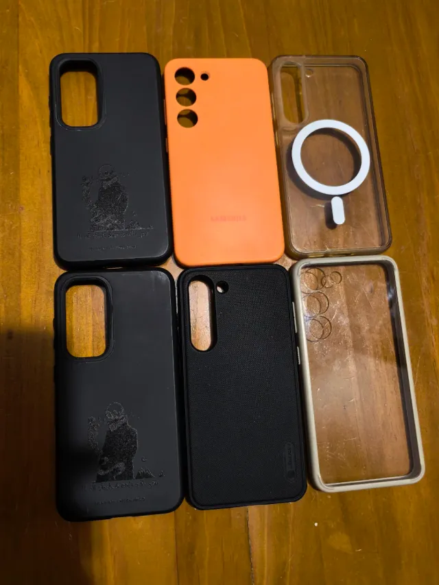 Dettagli del prodottoConfezione da 6 fondi per Samsung Galaxy S23. Venduti tutti insieme in confezione a 45€ o separatamente con questi prezzi: - 2x Rhinoshield SolidSuit nera con design inciso. 20€/pz. - Fondina originale Samsung arancione in silicone. 15€. - Fondina JETech con MagSafe. 7€. - Fondina Nillkin Super Frosted nera con MagSafe. 10€ - Fondina Spigen Ultra Hybrid color crema. 7€. La descrizione è stata tradotta automaticamente.