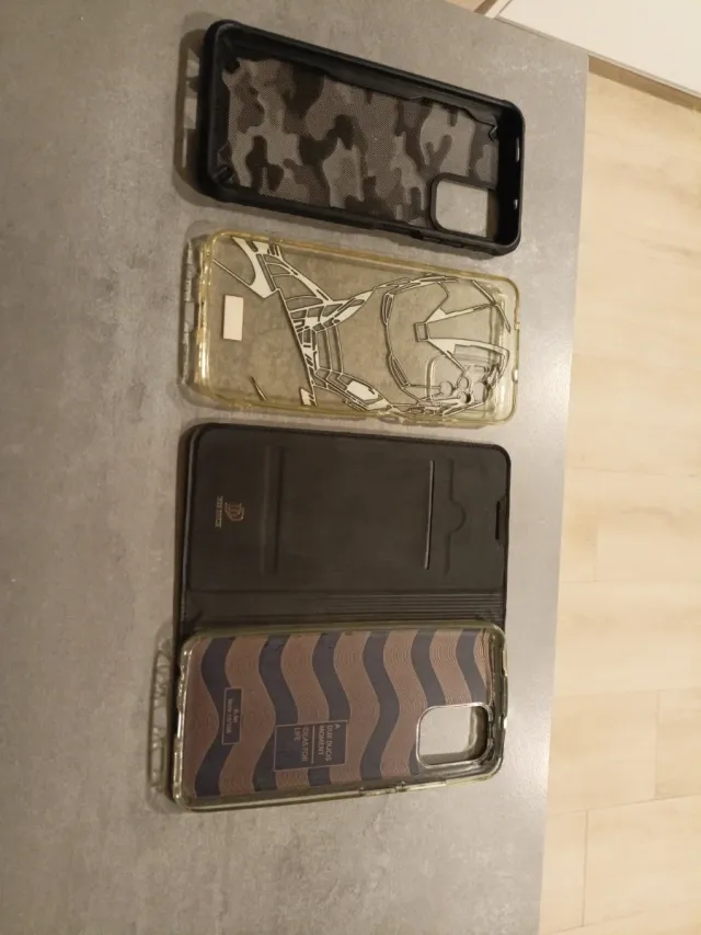 Dettagli del prodottoSet di cover per Xiaomi Mi 10T. Include vari stili e design. - Cover nera con stampa camouflage. - Cover trasparente Marvel. - Cover libro nera con porta carte. La descrizione è stata tradotta automaticamente.