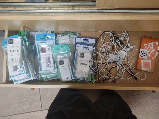 Set di accessori per iPhone. - Cover per iPhone 11 Pro. - Cover per iPhone 13 Mini. - Caricatori e cavi vari. Protettore per schermo e fotocamera iPhone 11 Pro vale 10€ ciascuno, il protettore 15€. Se vuoi tutto, costa 80€, ma vale di più poiché ci sono 10 cavi iPhone e circa 32 cover, che già ammontano a 420€ più 15€ per il protettore, per un totale di 435€, ma lo offro a 350€ (prezzo negoziabile).