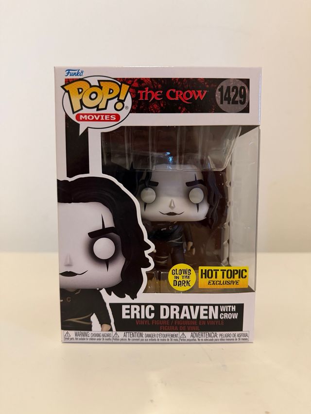 Dettagli del prodottoFunko Pop! Movies di Eric Draven dal film The Crow, numero 1429. Questa figura in vinile è un'esclusiva Hot Topic che si illumina al buio.