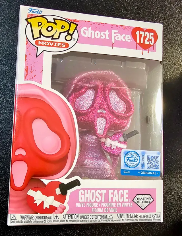 Dettagli del prodottoFunko Pop di Ghost Face, numero 1725, della Diamond Collection. La figura presenta una finitura scintillante. Bellissima Versione limitata San Valenrino con cuore pugnalato.