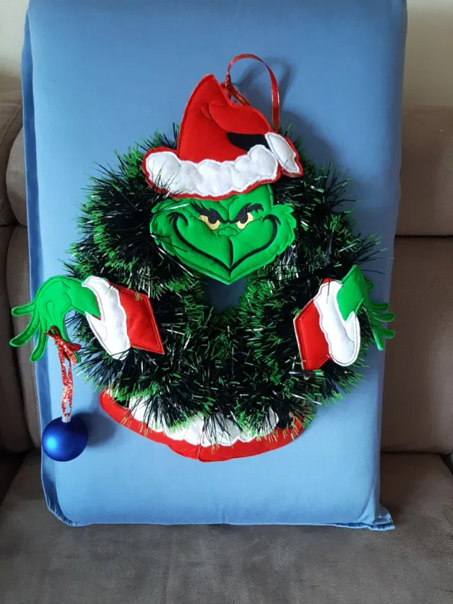 Dettagli del prodottoDecorazione natalizia a tema Grinch, perfetta per appendere alla porta.