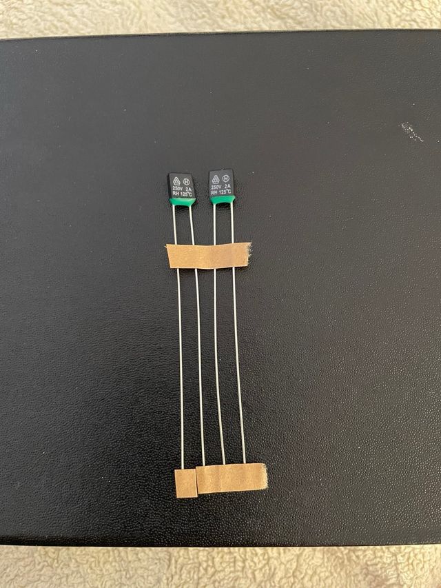 Vendo due fusibili termici in ottime condizioni. Sono nuovi e mai utilizzati. - Valore nominale: 250V 2A - Temperatura di intervento: 125°C - Due pezzi inclusi