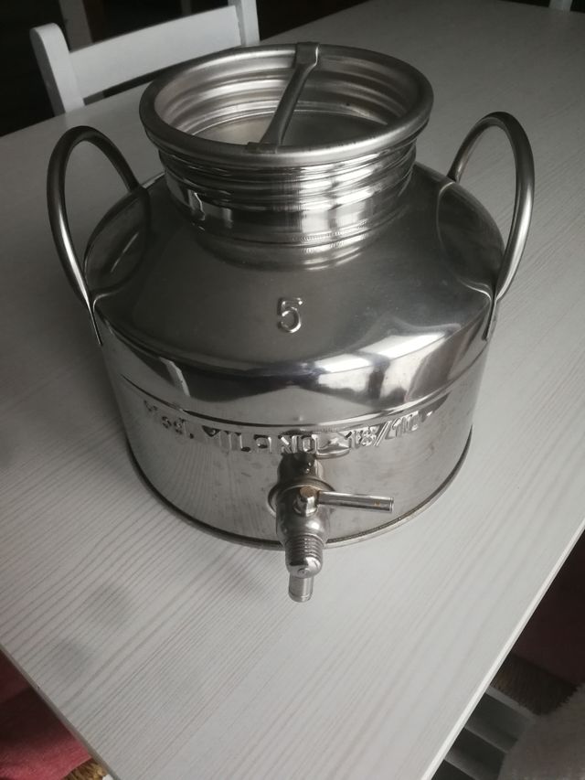 Bidoncino con rubinetto in acciaio inox. 5 kg. Per olio o altri liquidi.