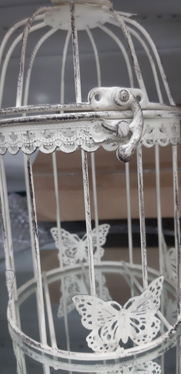 gabbia uccellini metallo, decorativa, con gancio, shabby style. Altezza 25 cm circa (euro 13) o altro modello 20 cm circa (euro 10)