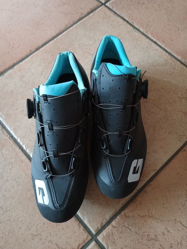 Dettagli del prodottoScarpe da ciclismo Gaerne Carbon, mai indossate causa numero errato. Sono un 39 ma vestono come un 38 reale.