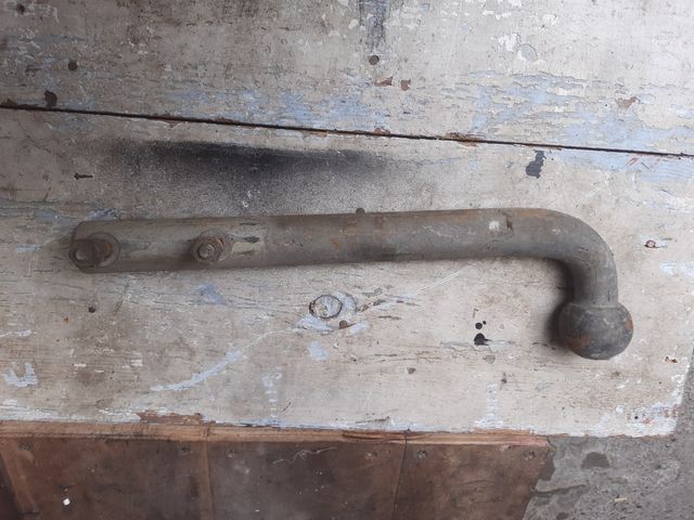 Gancio di traino in buone condizioni generali. - Realizzato in metallo resistente. - Presenta un design classico. - Colore grigio-argento, con segni del tempo.