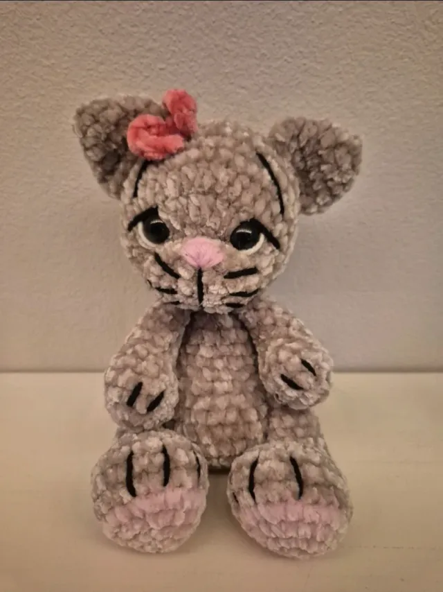 Gattina peluche fatta all'uncinetto in ciniglia