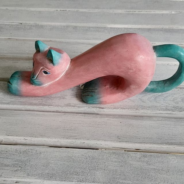 gatto in ceramica rosa e verde, lungo cm 30