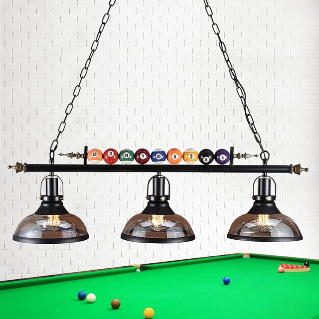 Dettagli del prodottoGCQ Lampade da tavolo da biliardo, Creative E27 Lampadario Lampada a sospensione in ferro battuto Apparecchio di illuminazione a soffitto con 3 paralume in vetro per il salotto del partito