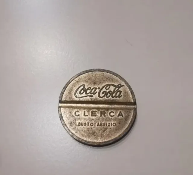 Gettone vintage Coca Cola, modello Clerca di Busto Arsizio. - Design circolare. - Scritta Coca-Cola in rilievo.