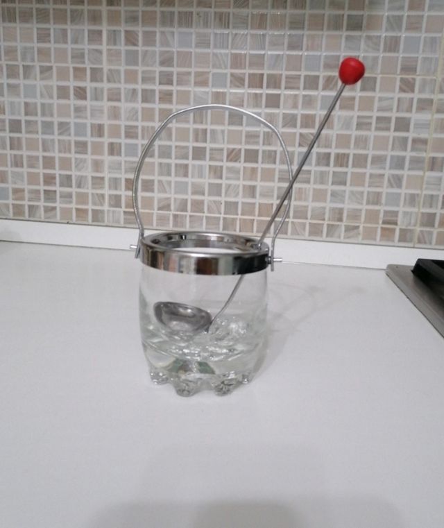 Dettagli del prodottoPiccola ghiacciera in vetro con cucchiaio