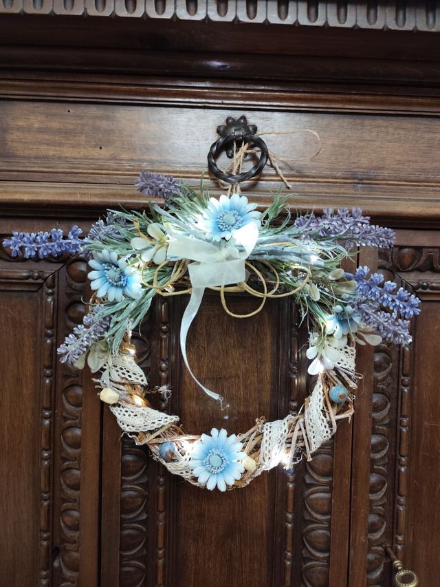 Ghirlanda shabby chic blu e bianca