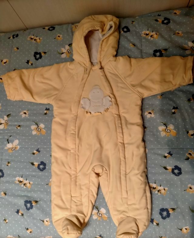Vendo giacca a tuta intera della Chicco. Colore giallo. Taglia 9 mesi Unico difetto si è rotto il gancio della cerniera come si vede da ultima foto