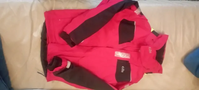 Giacca a vento Gill in colore rosso e nero, ideale per attività all'aperto. - Design bicolore. - Logo Gill visibile.