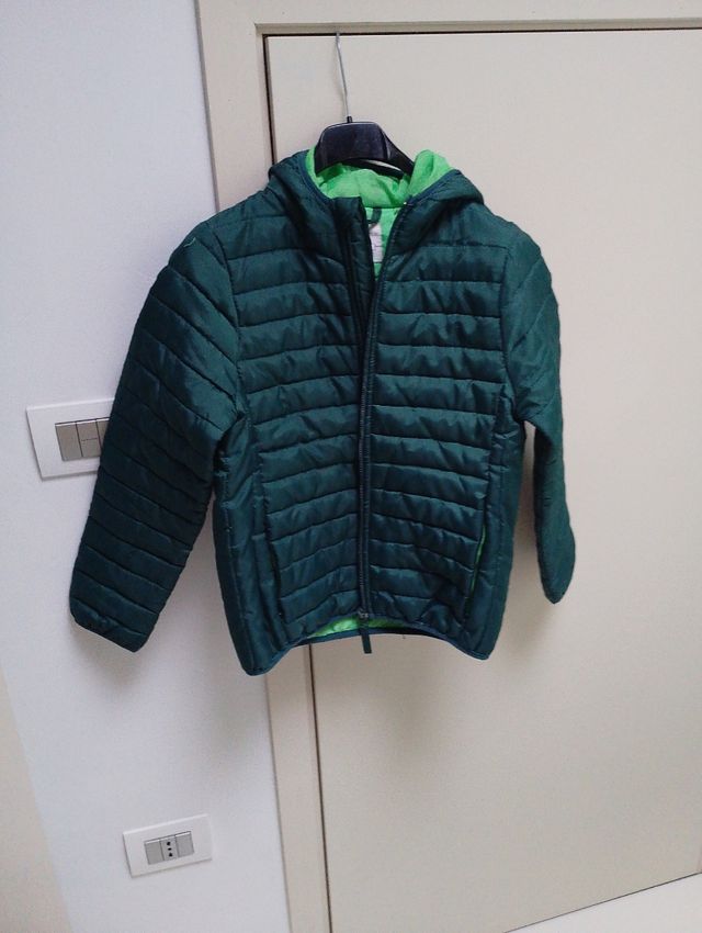 Giacca imbottita per bambino, perfetta per le giornate più fresche. - Colore verde intenso. - Fodera interna a contrasto. - Cappuccio integrato. - Chiusura con zip frontale.