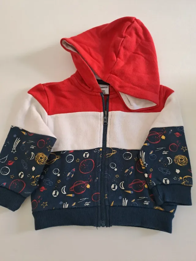 Dettagli del prodottoGiacca con cappuccio 6/9 mesi e zip frontale, perfetta per i più piccoli. Presenta un vivace design a tema spaziale.