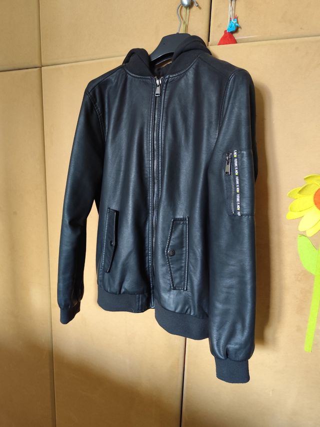 Dettagli del prodottoGiacca in ecopelle con un design moderno e un cappuccio integrato.
