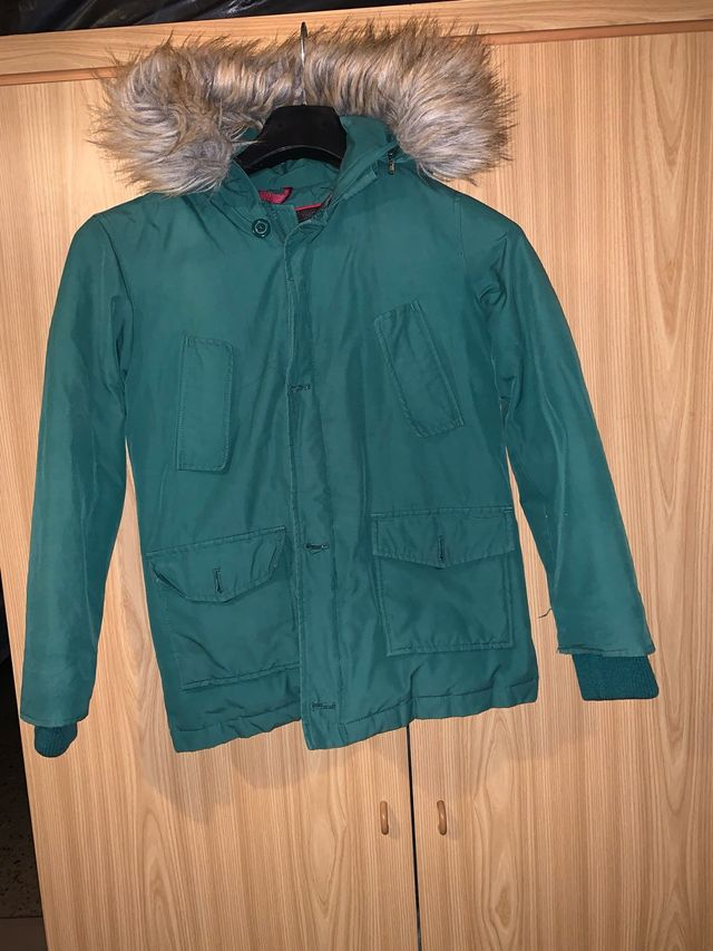 Dettagli del prodottoGiacca invernale per bambini con cappuccio bordato in pelliccia sintetica.