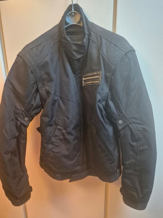 Giacca da moto donna Spidi, con paracolpi su spalle e gomiti, con zip e tasche. Utilizzata una volta. Giubbino interno staccabile. Lunghezza 66 cm, larghezza 47 cm, lunghezza manica 65 cm