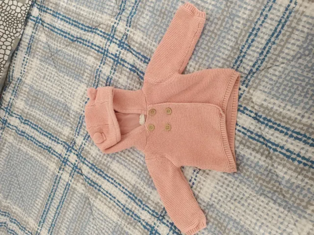 Morbida giacca in cotone per neonata, colore rosa. - Chiusura con bottoni. - Cappuccio con dettagli a forma di orsetto. - Maniche lunghe.