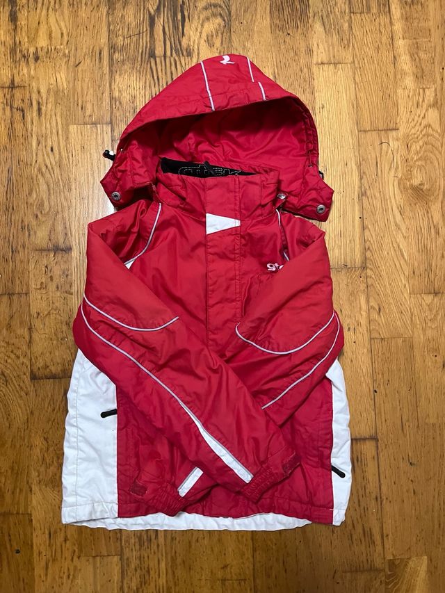 Giacca sportiva con cappuccio, perfetta per le attività all'aperto. - Colore rosso e bianco - Dettagli a contrasto - Cappuccio regolabile