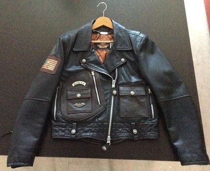 Giacca da moto "Harley Davidson" in pelle Marone. Fodera interna tipico Harley Davidson arancio. Modello unisex, misura M, con ornamenti Harley.