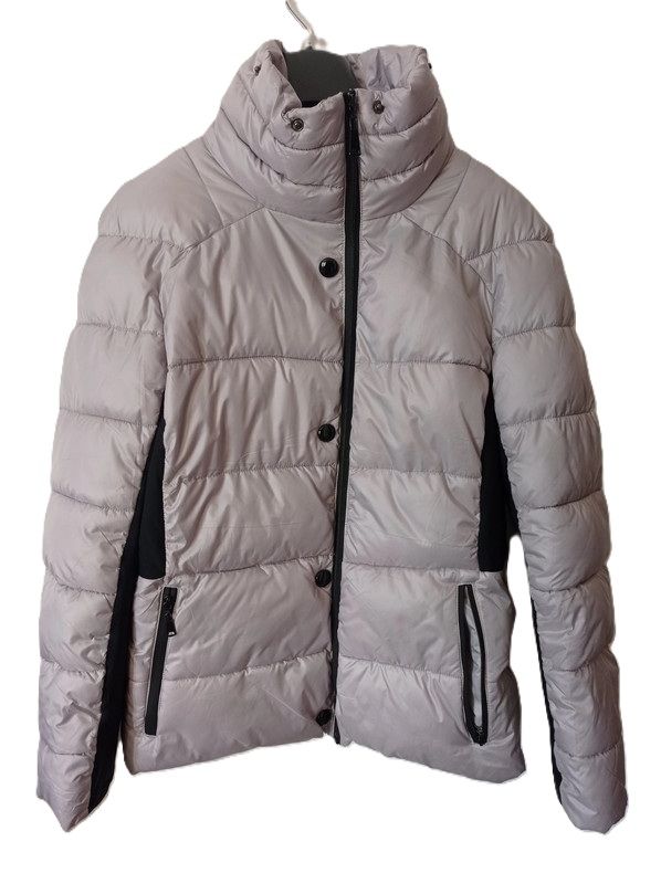 collo alto staccabile, due tasche frontali con zip.