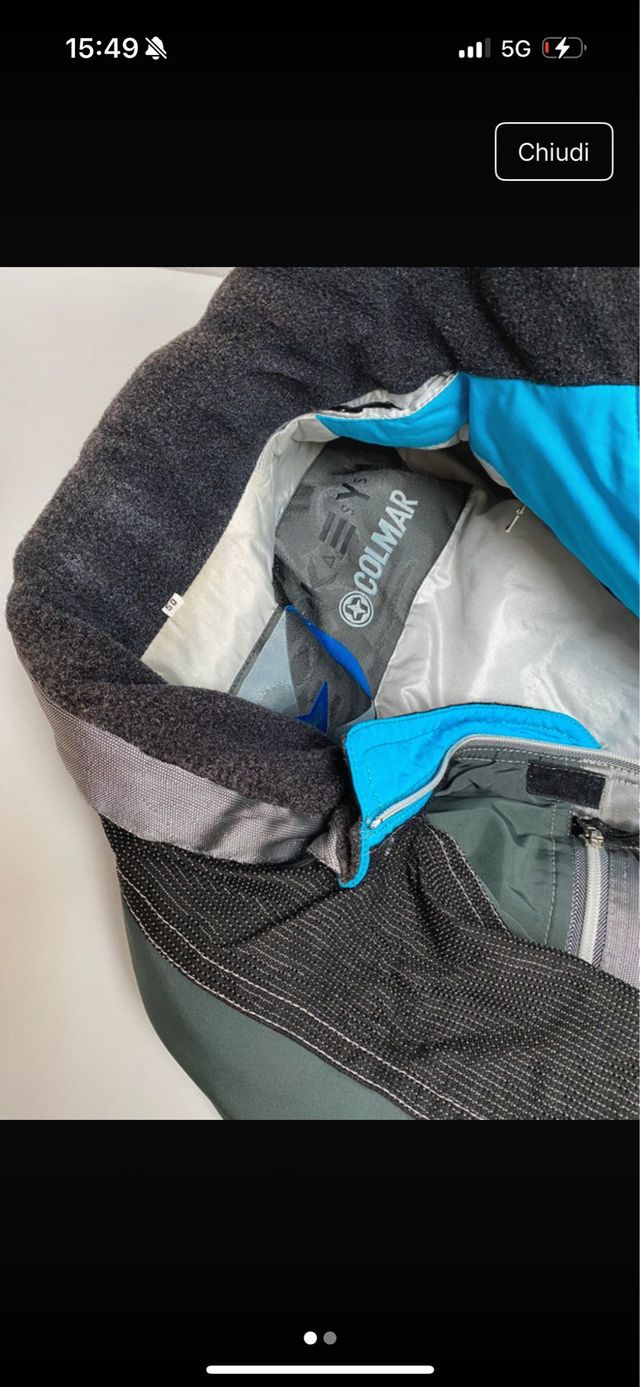 Vendo giacca da sci Colmar, usata ma in ottime condizioni. - Colore blu, grigio e nero - Imbottitura calda - Tasche funzionali - Cappuccio integrato