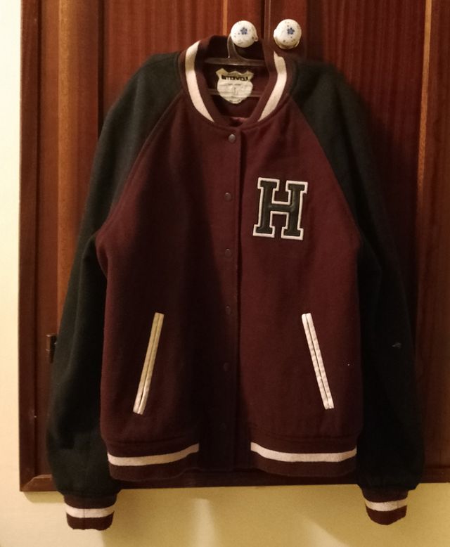 Giacca stile college americano taglia L da ragazza/o marca Bershka profilo delle tasche leggermente usurato
