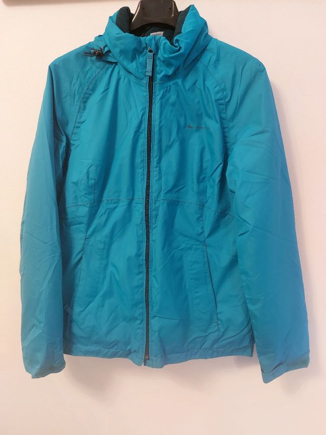 Dettagli del prodottoGiacca trekking impermeabile, con parziale copertura interna in pile. cappuccio arrotolabile