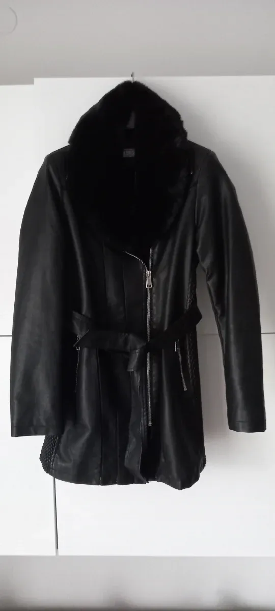 Giaccone in pelle con pelliccia nera