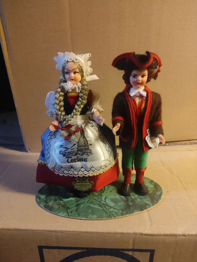 Dettagli del prodottoGiocattoli da collezione anni '50 di Eros Italia raffiguranti le maschere di Torino: Giacometta e Gianduja Misure del prodotto