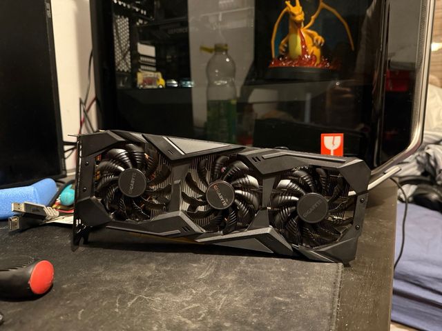 Dettagli del prodottoScheda grafica Gigabyte RTX 2070 con un design robusto e tre ventole per un raffreddamento efficiente. Design a tripla ventola. Cover nera con dettagli angolari. Logo Gigabyte sulle ventole. La descrizione è stata tradotta automaticamente.