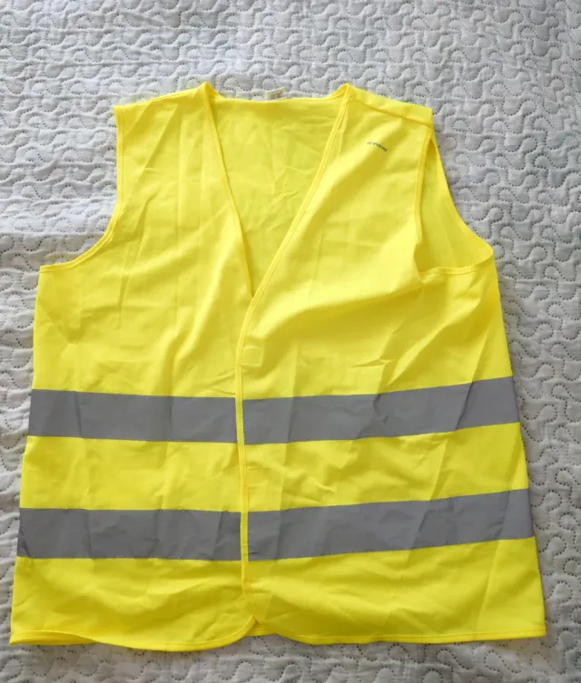 Gilet ad alta visibilità Btwin per adulti. - Colore giallo fluo. - Strisce riflettenti grigie.