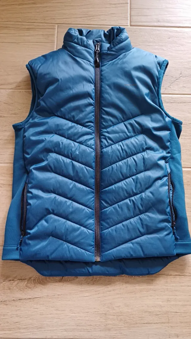 Dettagli del prodottoGilet bambino 10-11 anni, imbottito, colore tra il blu e il verde, marca Quechua originale, lateralmente ci sono 2 fasce elastiche, tasche con zip, molto comodo. In perfette condizioni, come nuovo. Buona vestibilità