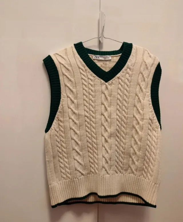 Gilet Zara Oversize Maglia Trecce Beige/Verde