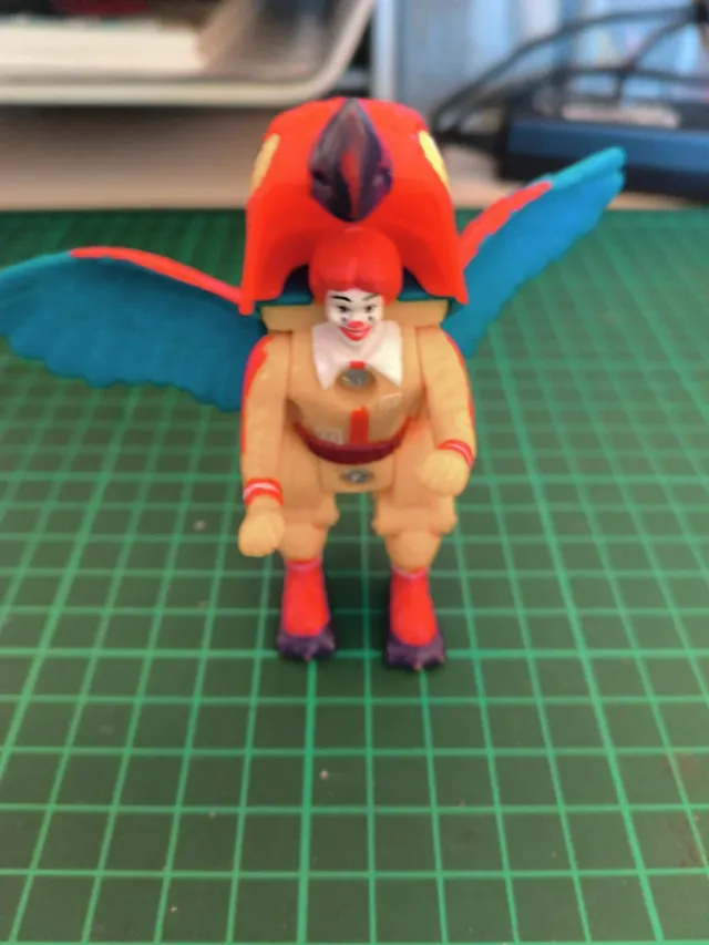 Giocattolo di Ronald McDonald con costume da pappagallo. - Personaggio iconico. - Dettagli colorati. Uso per colleziona giocattoli o per gioco