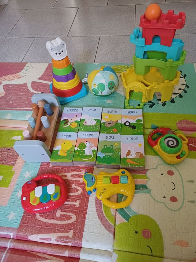 Lotto di giochi e libri adatti a bambini dai 6 mesi circa in su per stimolare nella crescita