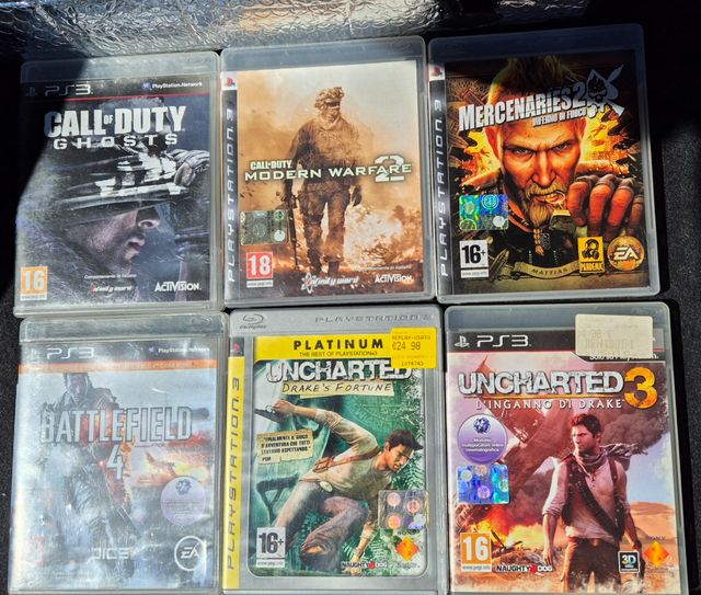 Call of duty ghosts Call duty modern warfare 2 Mercenaries 2 inferno di fuoco Uncharted 3 l'inganno di drake Uncharted drake's fortune Battlerfield 4 Tutti 20€ , singolo 5€.
