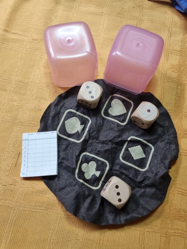 gioco da tavolo con dadi, semi delle carte, con libretto segnapunti, non so come si chiama, Lindt. contenitore rotto da un lato nuovo mai guocato