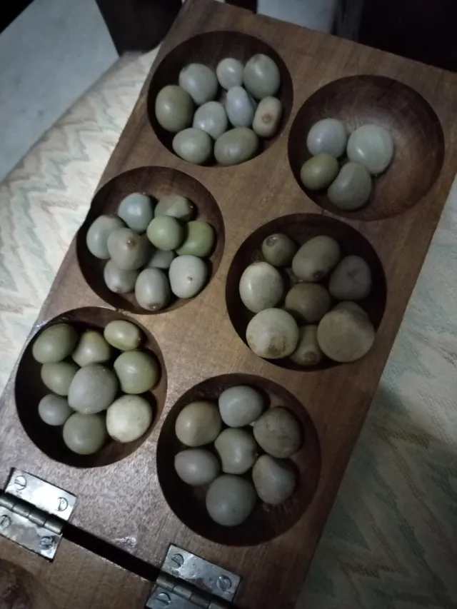 Dettagli del prodottoGioco da tavolo Ouril di Capo Verde, realizzato in legno. Artigianale creato nel 1997 isola di Sal Capo Verde