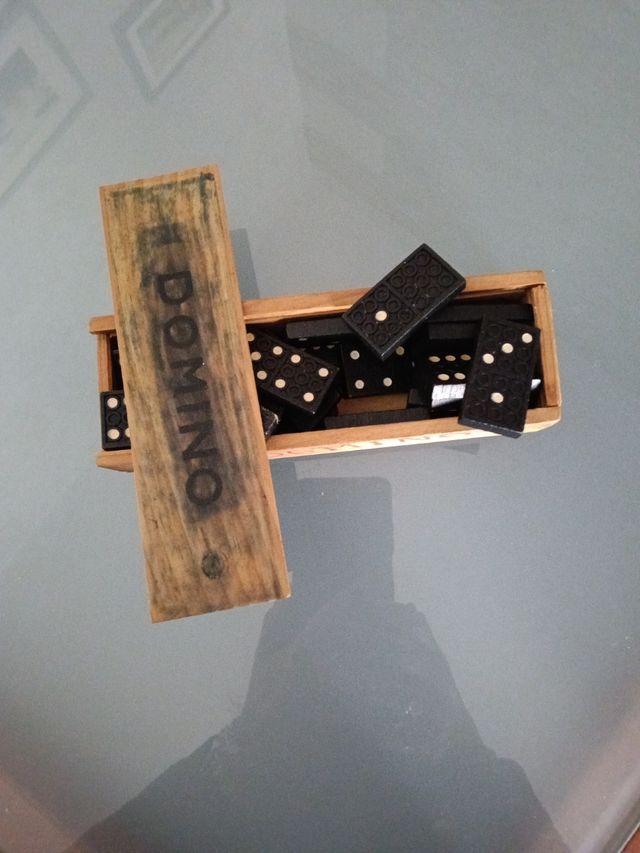 Gioco domino con custodia in legno e tessere in plastica rigida con retro serigrafato